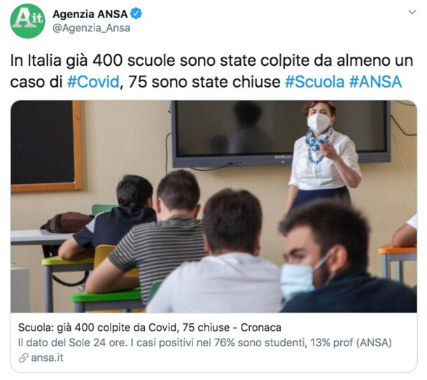 il covid a scuola, siamo di nuovo in Italia
