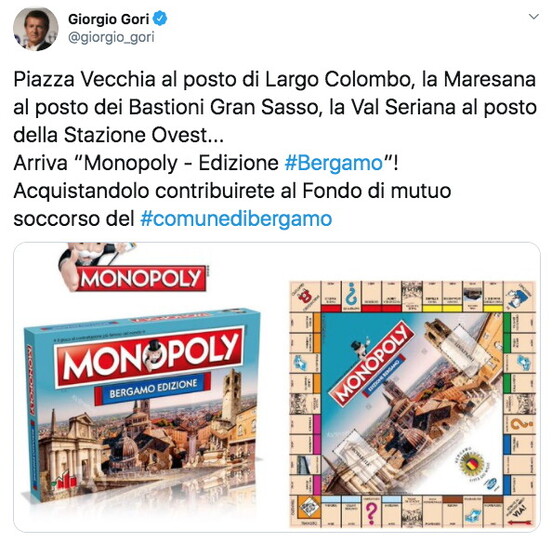 si avvicinano i lunghi pomeriggi d’inverno, cosa c’è di meglio che rinnovare il Monopoli (lasciamo la i) e aiutare Bergamo?