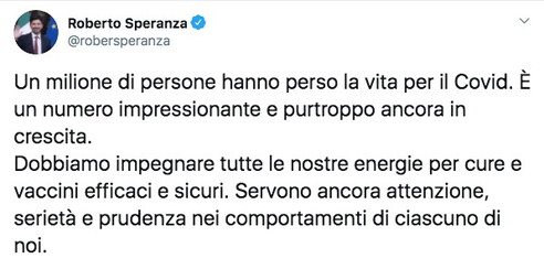 Il numero a 6 zeri che fa paura e l’impegno del ministro che, per fortunate e imprevedibili circostanze, ha saputo assicurare una buona gestione sanitaria della pandemia in Italia.