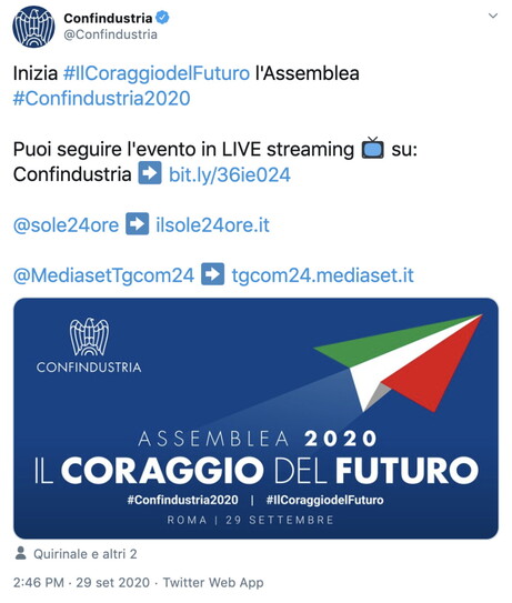 Imparare dagli altri, copiare, ispirarsi liberamente. Vale sia per Confindustria, che tenta di raddrizzare la sua linea primavera-estate tutta sprezzantemente anti governativa. E vale per il governo che oggi potrebbe trarre qualche ideuzza dalle indicazioni di Carlo Bonomi, alla sua prima assemblea da presidente. D’altra parte uno non intitola la relazione “il coraggio del futuro” se non ha intenzione di uscire dalla litania lamentosa o dall’invettiva finalizzata all’applauso per cominciare, invece, a darsi da fare per il paese. Troverete tutto sul sito confindustriale e sul Foglio.