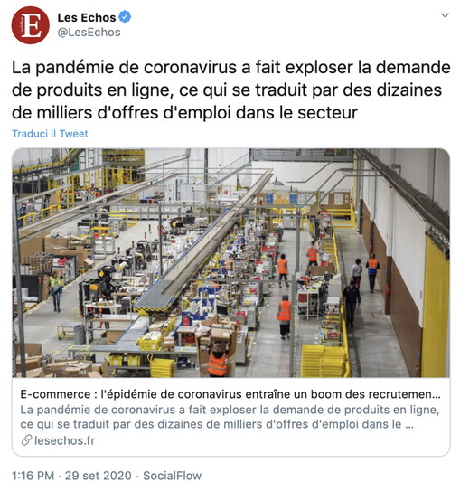 Pare che in Francia ci sia una grande crescita di lavoro a sostegno delle vendite online