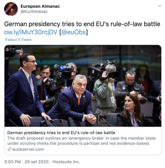 Come tenere Viktor Orban, un illiberale e irrispettoso delle regole democratiche, in un club liberale e dove si intende applicare lo stato di diritto. La soluzione al puzzle è in mano alla presidenza tedesca dell’Ue