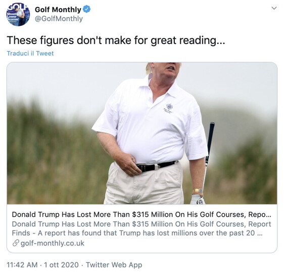 Donald Trump può imbrogliare sui suoi risultati come giocatore di golf ma non su quelli come imprenditore nel golf, perché il conto delle perdite arriva ed è pesante