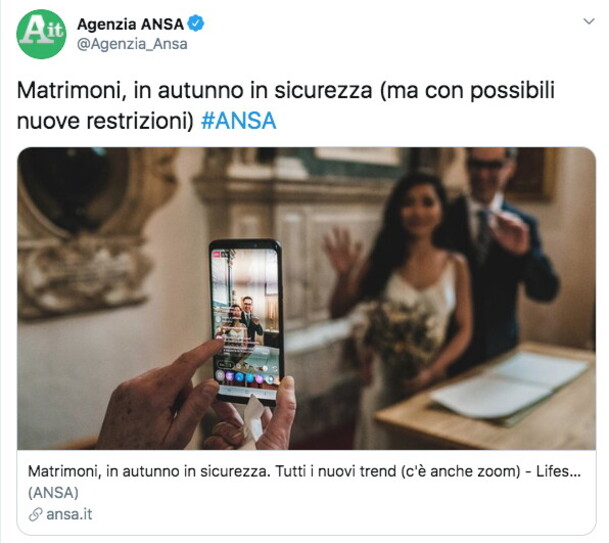 Quindi sposatevi tranquillamente, ma in pochi (e non sarà la fine del mondo, la festa la rinviate di un annetto, così il matrimonio sarà anche un po’ testato e quindi più credibile)