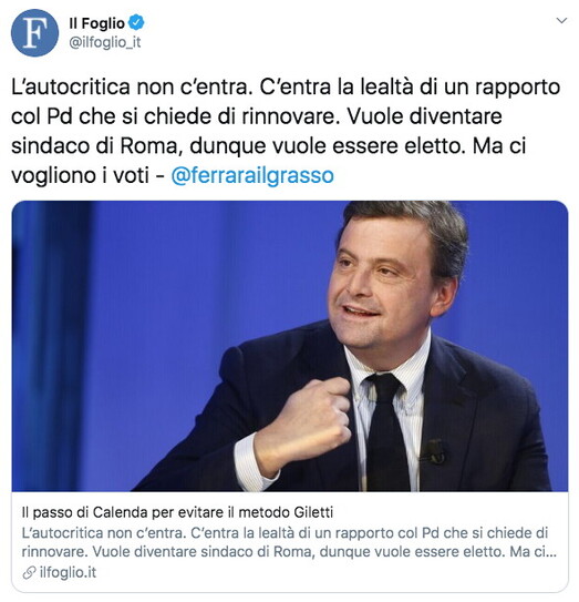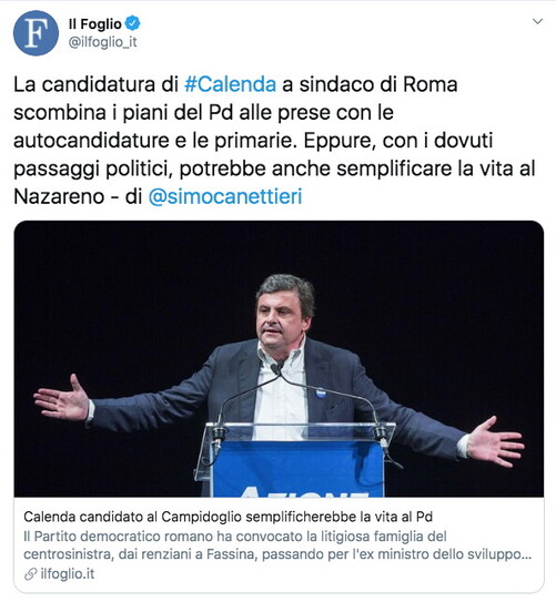 Poi è divertente anche Roma, certo, perché c’è il politicamente scarso Carlo Calenda a esibirsi nella replica della replica dell’errore. Eccolo a innalzare i suoi non ben chiari principi (che sembrano fatti solo di opposizione al governo Conte, con una specie di sopravvalutazione delle proprie e anche delle altrui capacità e importanza). Il Pd a queste condizioni non lo vuole, e dategli torto. Lui, se intende insistere, deve mettere in conto qualche rischio. Che succede se il Pd tira fuori un buon candidato? Perché Calenda pensa di avere un patrimonio politico ma ha solo l’arma minima e deboluccia del buon senso. Non si rende conto che di Calenda, di persone amministrativamente capaci e con qualche conoscenza della macchina pubblica, ce ne sono tanti. E tra quei tanti ce n’è un buon numero con maggiore talento politico. Ne troveranno qualcuno e allora il Calenda indispensabile diventerà uno come tanti. Oppure non lo troveranno. E allora il Foglio ci ricorda che il Pd potrebbe pure fare un po’ di contorsionismo e farsi piacere un Calenda che finirebbe per risolvere un problema immediato (ma a cena dubitate). Ma Calenda, insomma, non aiuta
