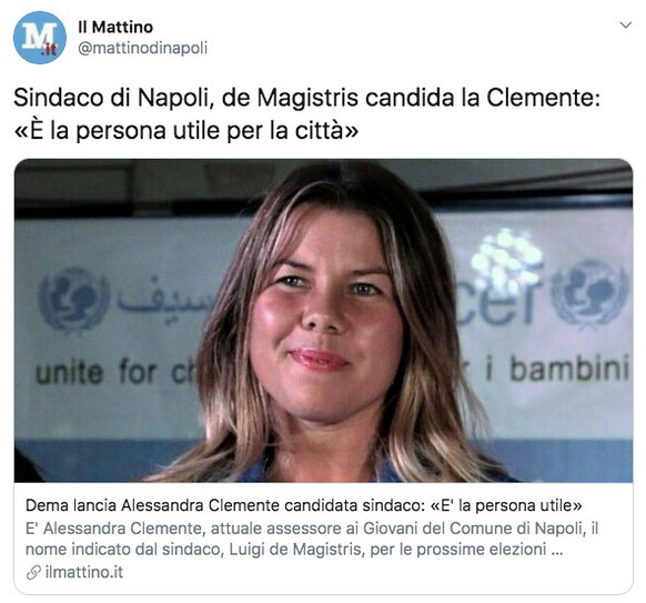 seguite Napoli e la politica napoletana, perché il mondo Dema (il partito personale e intestato alle prime lettere del suo cognome del sindaco Luigi De Magistris) è sorprendente. Nasce dema-gogico e soprattutto giustizialista, nel nome dell’anticasta manettaro che è diverso dall’anticasta un po’ straccione dei primi grillini (indignati solo e sempre dallo stipendio dei parlamentari) e nel nome di un eterno plebeismo napoletano, ma poi riesce a trasformarsi in un partito di potere strettamente sovrapponibile all’amministrazione locale di Napoli e questo non è un risultato banale. Tanto da tentare di sopravvivere alla permanenza nel ruolo di sindaco del suo ispiratore, padre e patronimico. Comunque Alessandra Clemente è brava, simpatica e stimata