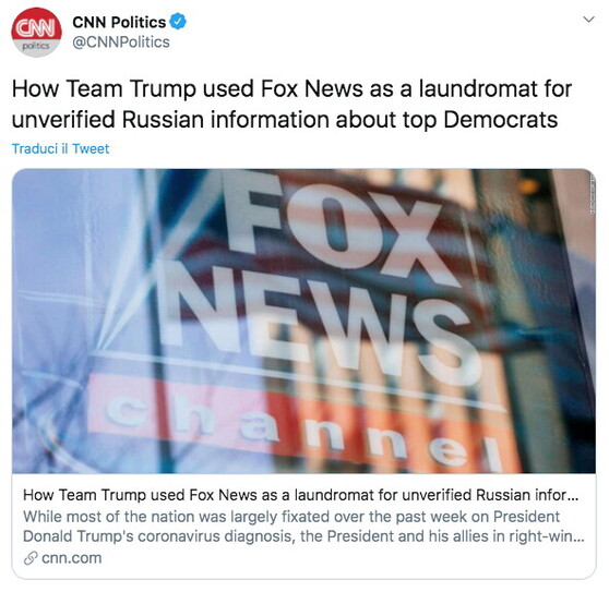 arriva monnezza informativa contro i democratici? Diamola a FoxNews che la ricicla e la usa in campagna elettorale (è uno dei modi di operare del campo trumpiano)