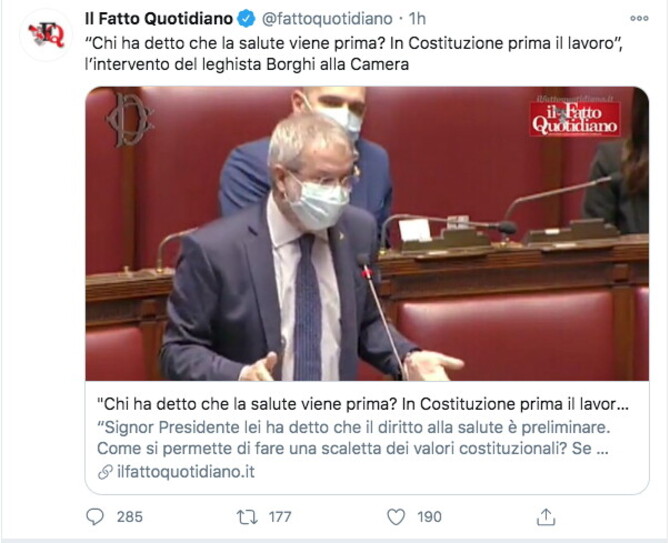 Giuseppe Conte in Parlamento, prova ancora a lasciare spazio alla collaborazione con l’opposizione sulle misure in difesa della salute di tutti, cercando (con la dovuta astuzia) di presentarle come scelte non politicamente caratterizzate, come norme dal carattere tecnico e anche imposte dalla situazione. E’ il tentativo di proporre un pareggio: il governo non si impanca a salvatore della patria e l’opposizione evita di speculare sui sacrifici. Ma non c’è niente da fare e, come sempre, l’opposizione di destra in Italia parte da un assunto pessimista, dalla convinzione che andrà comunque tutto male e che i cittadini, antigovernativi per principio, non vogliano essere difesi da un rischio collettivo con regole comuni. Però se spesso le cose sembrano così poi non vanno mai a finire secondo gli assunti del principio pessimista. Contro la paura, vero sentimento diffuso, si chiede azione e assunzione di responsabilità, anche commettendo errori. Mentre lo spettacolo di chi ora cerca di politicizzare la partita, con evidenti obiettivi di tornaconto elettorale a breve, risulta fastidioso e perfino disgustante. E quindi, effettivamente, dagli torto, per esempio, ad Andrea Orlando se ci riesci