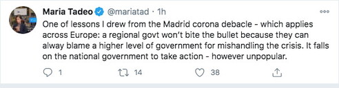 Ecco, vale come corollario a quanto si diceva prima, in poche righe, a partire dall’esperienza spagnola, perché i poteri locali non prenderanno mai decisioni pesanti per la vita delle persone (finché c’è un’autorità superiore si spera di lasciare ad essa il cerino)