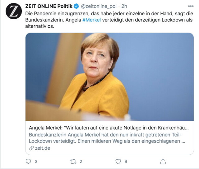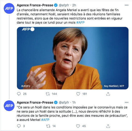 Angela Merkel dice cose simili e ribadisce che per uscirne fuori serve la collaborazione di tutti i cittadini. Il tono è come sempre grave ma misurato. La cancelliera parla di 4 mesi difficili davanti a tutti noi, nei quali servirà impegno e rispetto delle regole. E perciò, anche se le nuove restrizioni che entrano in vigore da oggi, dureranno un mese, anche per i 3 mesi successivi sarà richiesta una riduzione della socialità. Per farsi capire Merkel ricorda che anche a Natale e capodanno, quindi passato questo mese, le attività sociali saranno ridotte al minimo. Ricordiamo però che in Germania la scuola non chiude