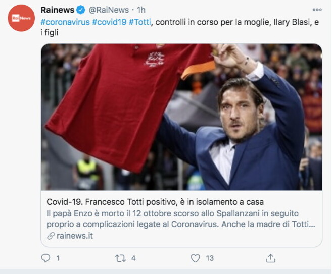 Totti positivo al Covid e gli ultimi sondaggi su Trump e Biden
