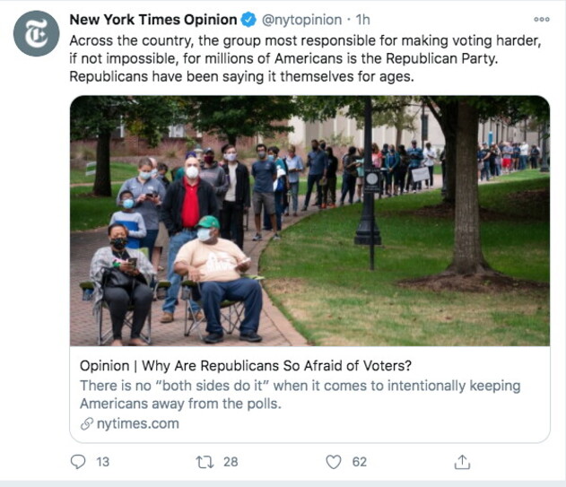 tutti gli artifici per rendere scomodo e difficile il voto, sperando che si rinunci, in cui eccelle, secondo il New York Times, il partito repubblicano