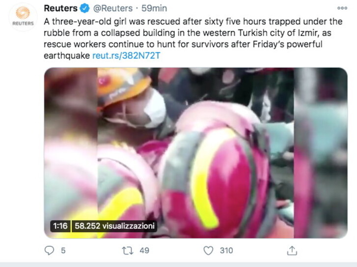 la bambina di tre anni trovata viva a 65 ore dal terremoto di Smirne