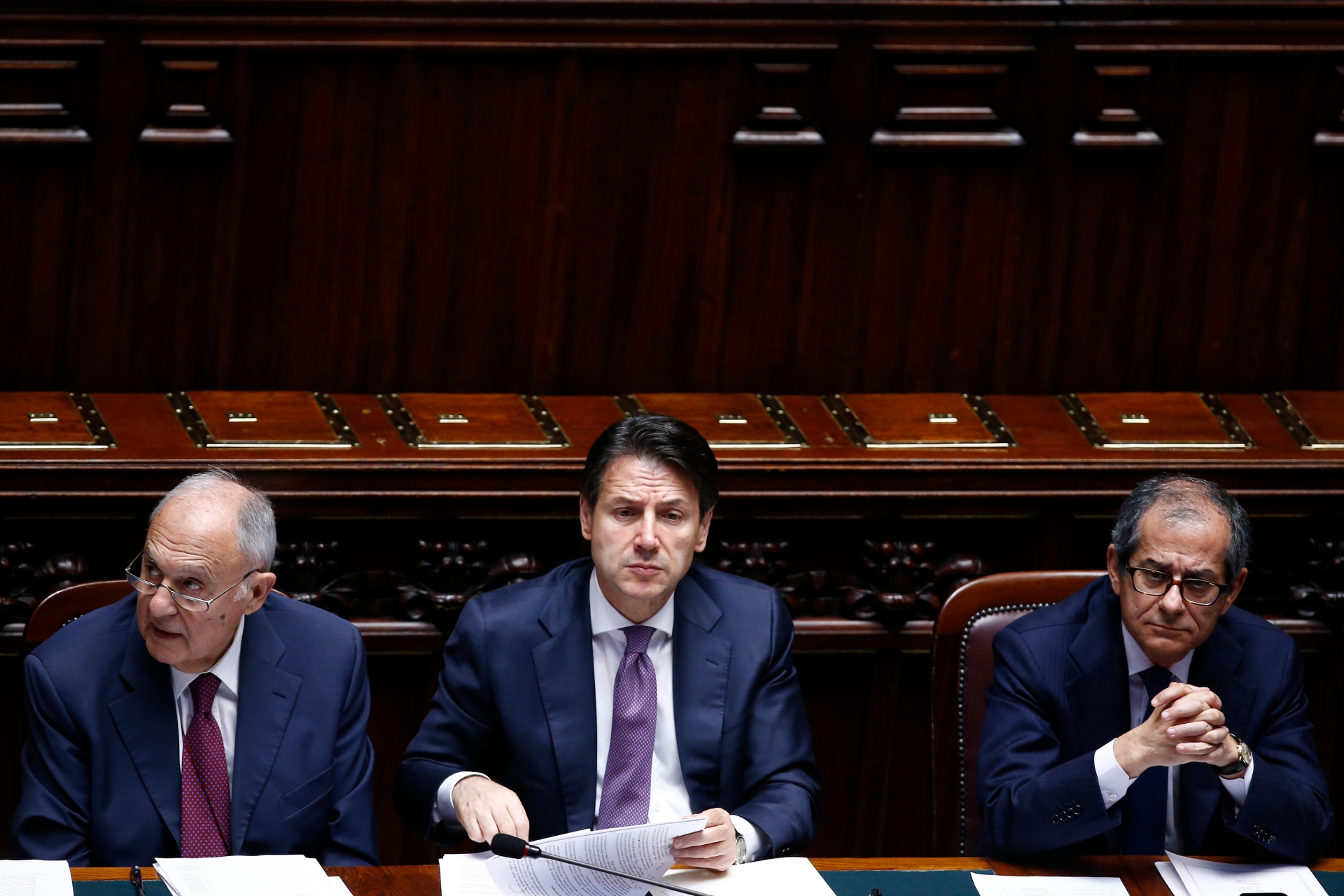 Giuseppe Conte, Giovanni Tria, Paolo Savona (foto LaPresse)