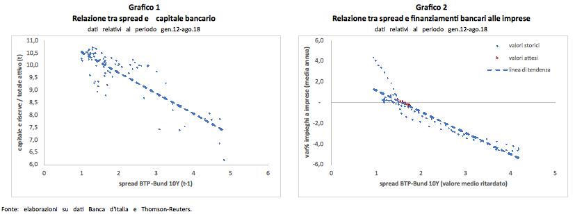 Due grafici per capire come l'aumento dello spread erode il capitale delle banche e i finanziamenti alle imprese