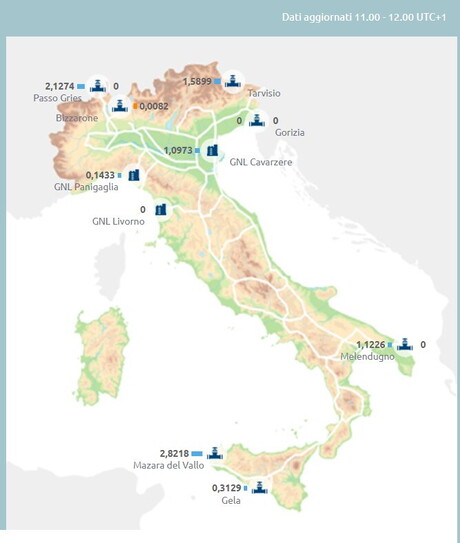 Non è escluso che una quota dei volumi aggiuntivi importati da Passo Gries siano anche russi: i punti di connessione della rete europea consentono l'arrivo sulla frontiera svizzera anche del Nord stream 2. In generale, la rete italiana del gas fa i conti da settimane con flussi variabili del gas che arriva a Tarvisio e non è facile distinguere le ragioni commerciali da quelle politiche. I numeri mostrano oscillazioni che vanno da 25 milioni fino a 80 milioni di metri cubi al giorno.