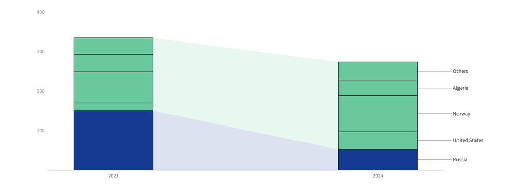 Anche da Bruxelles studiano questa possibilità con interesse, in linea con il piano di eliminare definitivamente le importazioni di combustibili fossili dalla Russia che verrà presentato il prossimo 6 maggio con una roadmap. D’altra parte, senza gli Stati Uniti l’Unione europea non sarebbe riuscita a superare la dipendenza da Mosca, che l’anno scorso ha venduto all’Europa ancora 50 miliardi di metri cubi di gas rispetto ai 150 del 2021. Già oggi quasi la metà del Gnl trattato in Europa è americano e le importazioni sono più che raddoppiate dopo l’invasione russa dell’Ucraina, come conseguenza degli impegni assunti dall’Amministrazione Biden con la presidente della Commissione europea Ursula von der Leyen nel 2022.