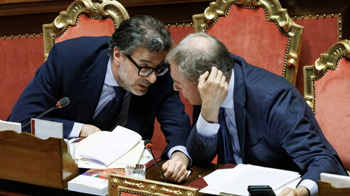 Giancarlo Giorgetti con Adolfo Urso (foto LaPresse)