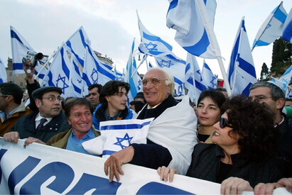 Marco Pannella durante l'Israele Day nel 2002 (foto LaPresse)