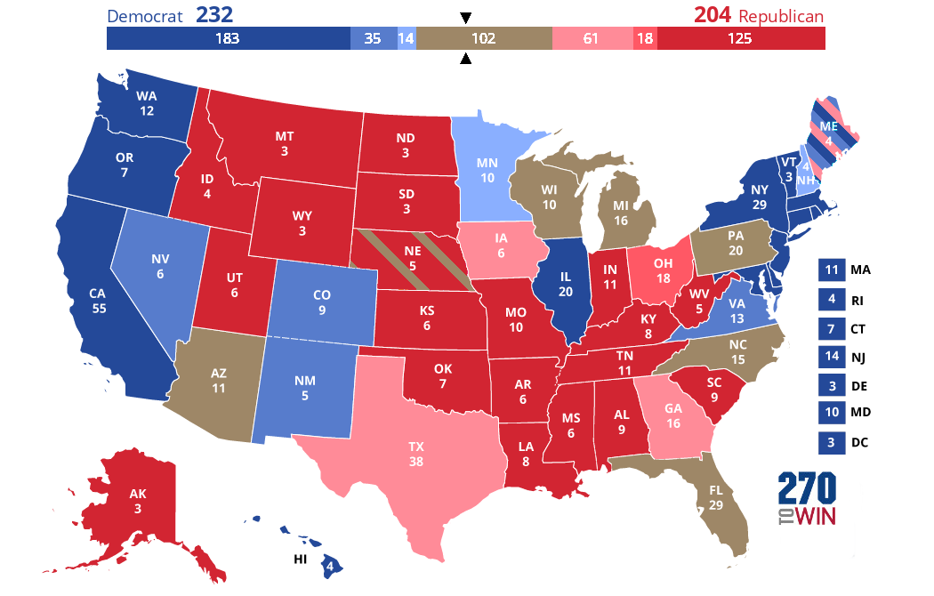 La seconda cosa sulle elezioni che lo spostamento della convention ci dice riguarda gli swing states. Una convention, in genere (non sempre, per chiarimenti citofonare Clinton e chiederle della convention a Philadelphia nel 2016) è foriera di una grande ricaduta in termini di propaganda: del resto è difficile non votare per un partito che ha portato, per una settimana, nel proprio stato, visitatori e soldi da tutto il mondo. Per questo è importante scegliere con cura lo stato in cui riunirsi. E per questo, quasi sempre, le convention vengono organizzate in stati in bilico. Il North Carolina è in bilico, ma vale “solo” 15 voti. La Florida, dove la convention potrebbe essere spostata, in città come Orlando o Jacksonville invece, ne vale 29. L’altro stato papabile per la convention, il Nevada, con l’improvvisamente impoverita Las Vegas, ne vale 6 e sembra destinato ai democratici, ma potrebbe ricevere un segnale molto pesante in termini di risposta alla crisi e trascinarsi dietro altri stati in bilico e colpiti dal CoVid come la Florida o il Michigan.