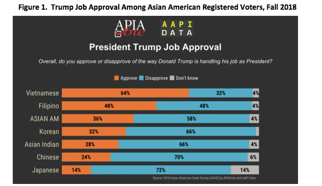 Tra questi, moltissimo, potrebbe contare quello degli elettori asiatici, che, eccezion fatta per i ragazzi tra i 20 e i 30 anni, appaiono tutti o quasi schierati dal lato di Donald Trump: secondo uno studio del 2018 di Asian American Pacific Islands Data, il 48 per cento dei filippini e vietnamiti americani ha affermato di avere una percezione favorevole del Partito repubblicano.