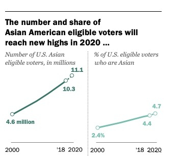 In merito si aprono scenari interessanti. Dal punto di vista numerico, in primo luogo, e poi da quello politico. Per quel che riguarda i numeri occorre tenere presente che gli elettori asiatici sono tanti (circa il 5 per cento) e in crescita (+139 per cento dal 2000 a oggi; gli elettorati bianco e nero, nello stesso periodo, sono cresciuti rispettivamente del 33 per cento e del 7 per cento).