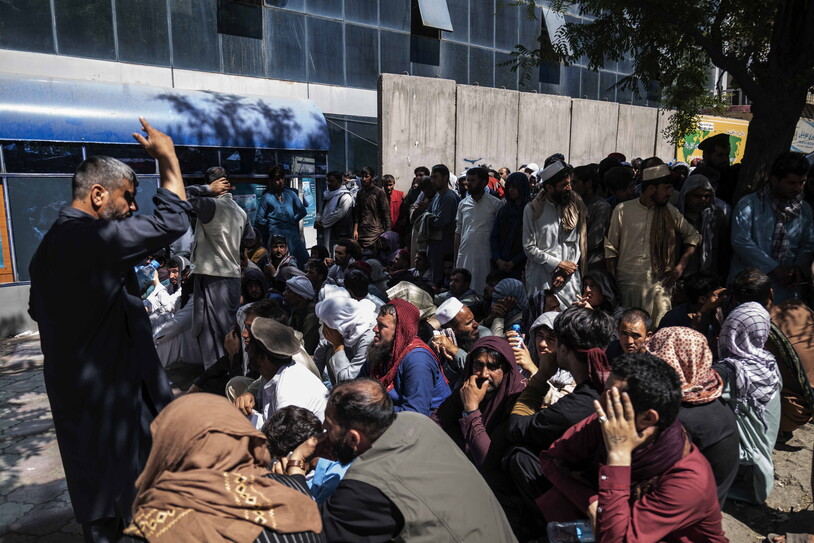 (Afghani in coda davanti alle banche di Kabul per ritirare soldi. Foto di Gabriele Micalizzi)