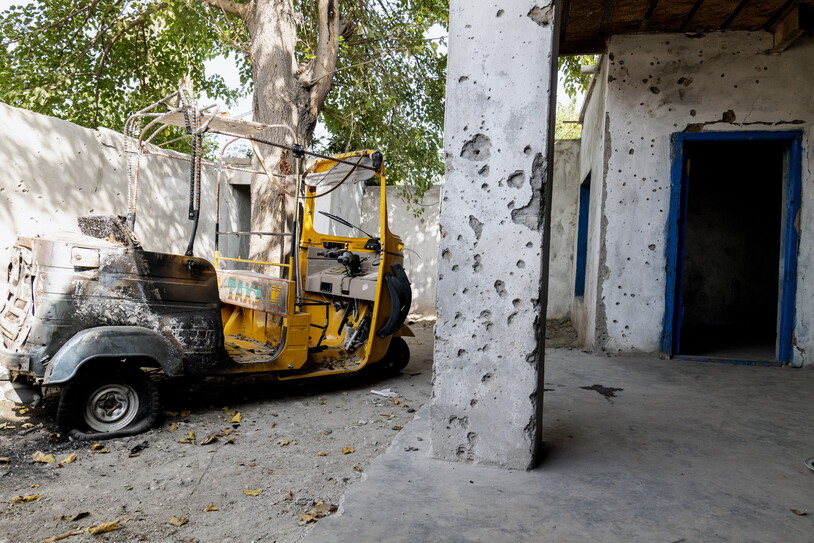 Un telo copre l’ingresso del giardino cintato della casa, ci si arriva da un vicolo. Scosti il telone e vedi la raggiera delle schegge su tutti i muri e sulle colonne di cemento e il punto d’impatto del missile, che gli uomini del villaggio hanno riempito di terra in modo che chi entra non ci finisca dentro. A un metro dal punto d’impatto c’è la carcassa bruciacchiata di un tuk-tuk giallo. Era il lavoro dell’uomo. L’esplosione ha ucciso lui, la moglie e il figlio, dice la gente, anche se il capovillaggio sostiene di non avere visto i corpi mentre erano portati via – ma altri sono arrivati per primi sul posto e hanno raccontato cosa hanno visto. Sul pavimento di una camera c’è ancora una pozza di sangue nero, è dove hanno portato un corpo subito dopo l’esplosione per prestare i primi soccorsi ma a giudicare dalla quantità di sangue perso era troppo tardi. La gente dice una cosa interessante: la notte dell’esplosione nella casa oltre alla moglie e al figlio c’erano “decine di donne, non di qui”. In una società così rigida la presenza delle donne non si spiega. Un’ipotesi: la casa forse serviva da scalo per le donne dello Stato islamico che tentavano di riunirsi ai loro uomini, che in queste settimane sono riusciti a scappare a centinaia dalle carceri in giro per il paese (l’attentatore che ha ucciso quasi duecento persone all’aeroporto di Kabul, Abdul Rahman al Logari, era uno di loro: appena libero si è andato ad arruolare nel gruppo dei volontari suicidi).