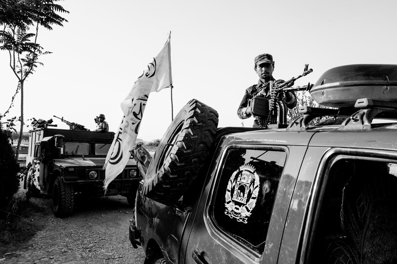 Un gruppo di talebani pattuglia la strada tra Jalalabad e il confine con il Pakistan (Foto di Gabriele Micalizzi)