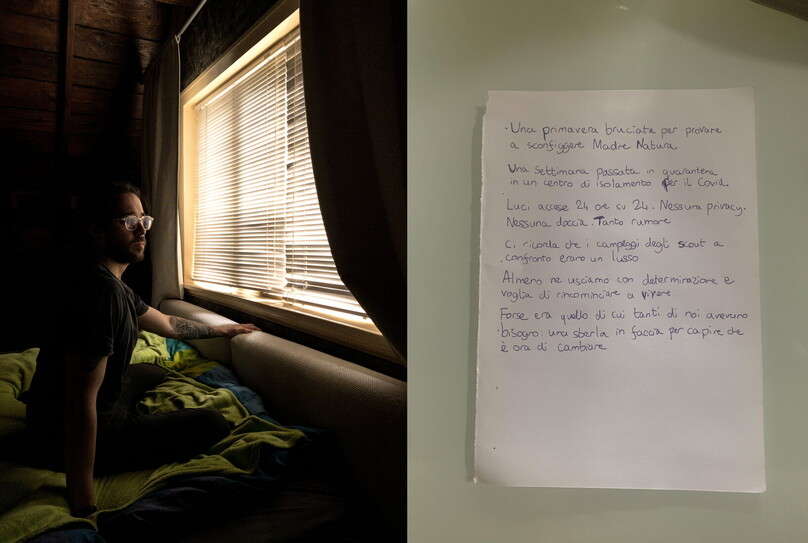 Alessandro, fotografato nel suo appartamento a Shanghai, Cina, il 29 aprile 2022. Nel suo messaggio scrive: “Una primavera sprecata a cercare di sconfiggere la natura. Una settimana passata in quarantena in un campo di isolamento. [...] Almeno ne usciremo con determinazione e voglia di ricominciare a vivere. Forse era quello di cui tanti di noi avevano bisogno: una sberla in faccia per capire che è ora di cambiare”