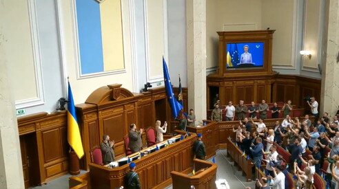 Da oggi la Rada, il Parlamento ucraino, ha la bandiera dell'Unione europea esposta al fianco di quella nazionale. In occasione dell'intervento della presidente della Commissione Ue Ursula von der Leyen, il presidente del Parlamento ucraino Ruslan Stefanchuk e il presidente dell'Ucraina Volodymyr Zelensky hanno issato la bandiera blu con le 12 stelle dorate alle spalle dello scranno dove siede il presidente d'Aula. "Il nostro obiettivo è la piena adesione nell'Ue. Comprendiamo che l'accesso non sarà immediato ma condivideremo questa strada con l'Europa", ha spiegato Stefanchuk. Che su Facebook ha aggiunto: "Fino a stamattina avevo due sogni. Il primo: nella sala della Verkhovna Rada, accanto alla bandiera gialloblu ucraina, la bandiera dell'Unione europea. Il secondo è quando finalmente toglierò la divisa militare e indosserò una camicia bianca per condurre una sessione plenaria pacifica del Parlamento. Il primo sogno si è già avverato, il secondo si avvererà. La bandiera dell'Unione europea si addice alla Rada. E per colore, e per senso".