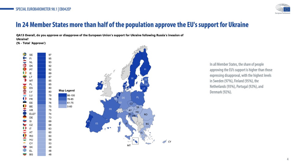 Fra i 27 stati membri siamo in coda per le politiche filo ucraine, dice l’ultima indagine dell'Eurobarometro. Solo sei italiani su dieci approvano l'aiuto di Bruxelles a Kyiv