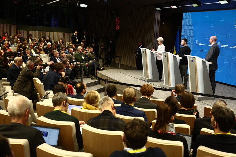 Il presidente ucraino per la prima volta dall'inizio della guerra fa visita alle istituzioni europee. Ai ventisette dice: "Stiamo difendendo l'Europa"