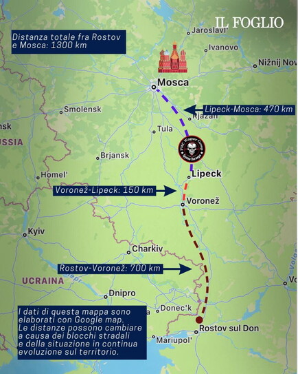 La capitale russa si trova a 470 km a nord di Lipeck. Quanto più i mercenari manterranno questo ritmo, tanto meno tempo avrà la regione di Mosca per organizzare le sue difese.
