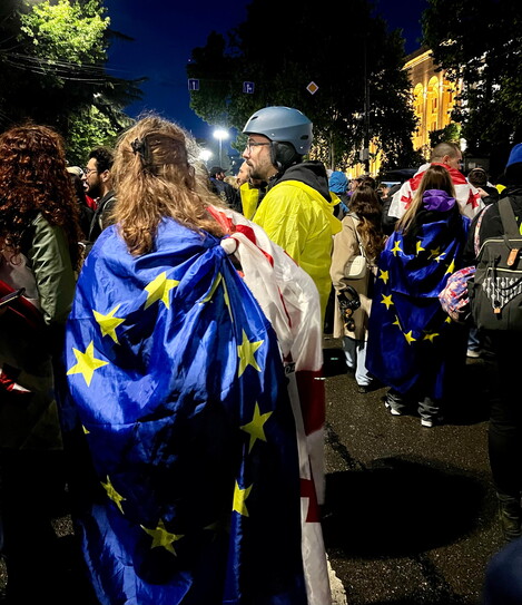 Tbilisi, dalla nostra inviata. Natia ha la maschera da sci per proteggere gli occhi dai gas lacrimogeni, è nelle prime file dei manifestanti sballottata dai movimenti di chi le sta accanto e alza la testa soltanto quando la polizia muove un passo in avanti. Ha lo sguardo sullo smartphone, su una chat piena dei consigli di un’amica più grande, Olga, un’ucraina trentunenne che dieci anni fa aveva occupato Maidan a Kyiv durante una rivoluzione che i ventenni georgiani di oggi guardano con ammirazione. Visti dall’alto i manifestanti di Tbilisi, che sono migliaia, sono un rettangolo colorato di rosso, bianco, blu e giallo dalle bandiere della Georgia, dell’Unione europea, dell’Ucraina e degli Stati Uniti. Di fronte hanno un quadrato compatto e nero, formato dai poliziotti con il passamontagna calato sulla faccia, che in questo punto sono centinaia disposti per file.