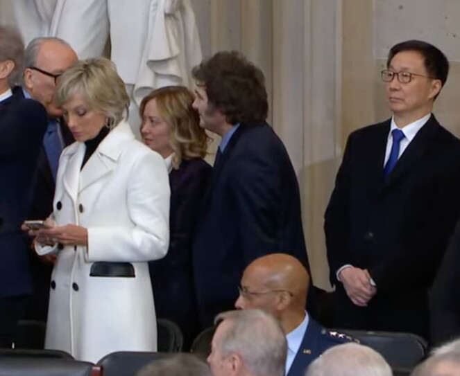 A causa del freddo intenso che c'è oggi a Washington, la cerimonia si è svolta all'interno dell'edificio, nella rotonda del Campidoglio, che può ospitare circa 600 persone. Nella sala erano presenti i miliardari Elon Musk, Jeff Bezos, Mark Zuckerberg e anche Shou Chew, capo del gigante cinese TikTok. Inoltre, gli ex presidenti Bill Clinton, George W. Bush e Barack Obama con le loro mogli, a eccezione di Michelle Obama.