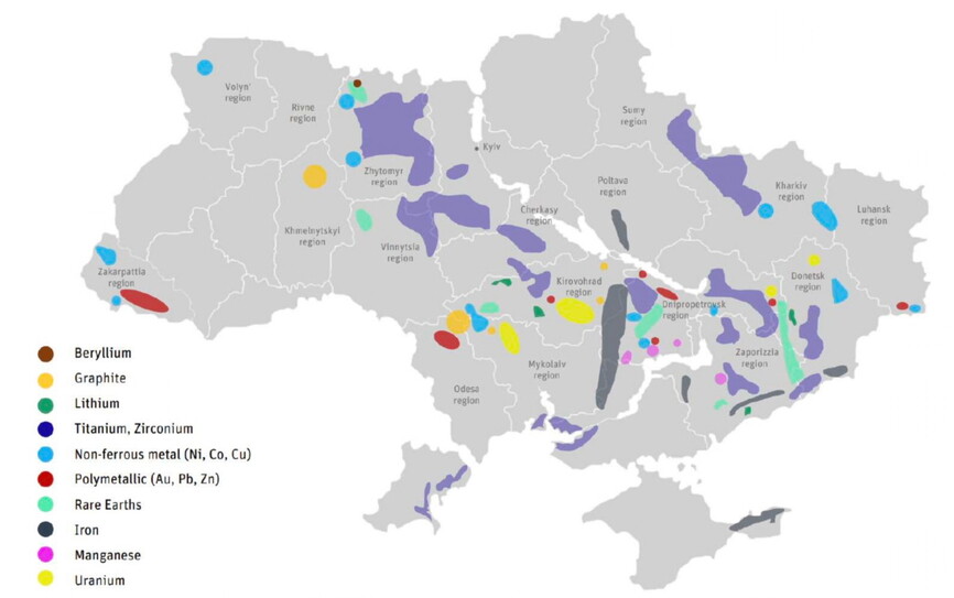 Una mappa delle risorse minerarie e terre rare dell'Ucraina