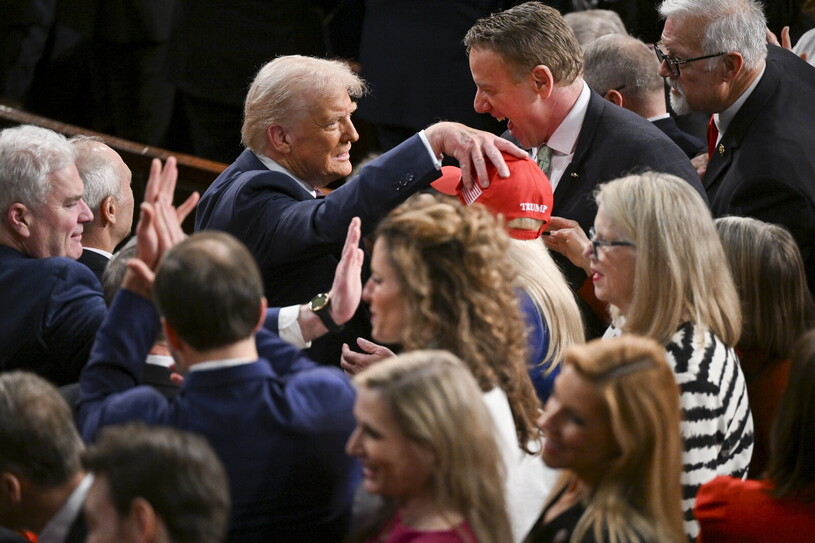 La deputata Marjorie Taylor Greene (R-Georgia) ha indossato un cappello rosso di Trump in aula, non con il tradizionale slogan "Make America Great Again", ma con la scritta "Trump Was Right About Everything!" sulla parte anteriore e "45-47" sul lato. Trump gli ha dato una pacca di approvazione mentre entrava in aula.