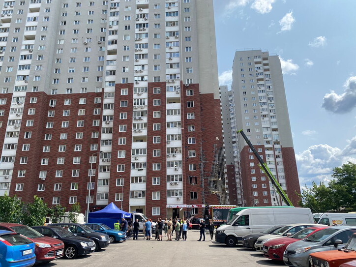 Tutte le finestre di casa di Kateryna sono state sfondate, il balcone è stato danneggiato: l’onda d’urto ha sfondato i davanzali e danneggiato anche il letto. “Avevo pensato di arieggiare le stanze, certo non così”, cerca di scherzare. Nel frattempo, i soccorritori stanno percorrendo la facciata dell’edificio con una gru e stanno smantellando pavimenti, lastre e macerie ai piani inferiori. I diciotto appartamenti dal primo al quarto piano sono stati i più colpiti. Un elicottero vola avanti e indietro nel cielo, riversando acqua su un grande oggetto in fiamme che si trova nello stesso isolato.