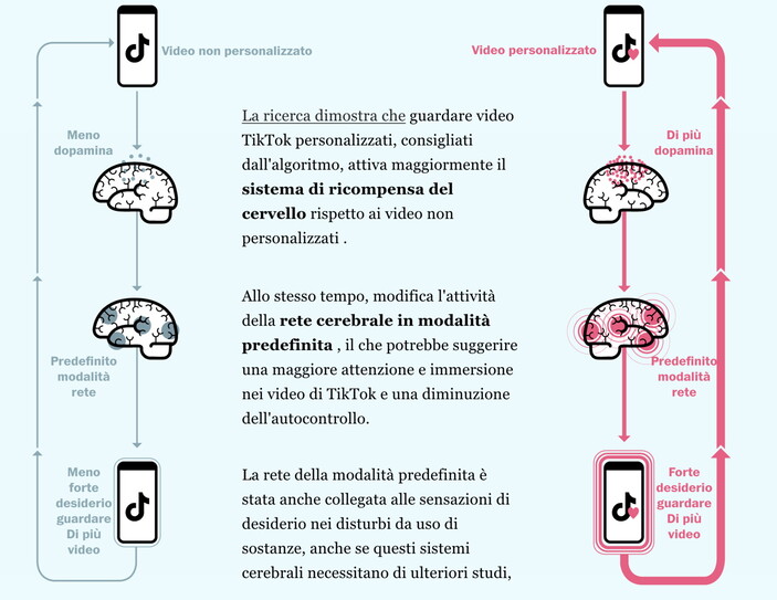 Il nostro cervello sembra rispondere ai video di TikTok personalizzati in base ai nostri gusti in modo simile a come reagisce al denaro, al cibo e ad altre sostanze piacevoli, ha affermato Marc Potenza, professore di psichiatria alla Yale School of Medicine.
