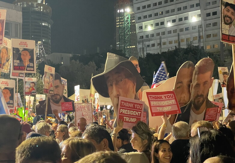 I cartelli sono molti, ma non bastano per tutti, la folla è così compressa che una signora minuta chiede a un padre altissimo, in piazza con tre figli, di mostrare il cartello più in alto che può, in modo che si veda bene la scritta: “Thank you president Trump”. Forse è l’ultima piazza, è un saluto a questa lotta durata due anni, che per la maggior parte del tempo è stata straziata, che al vedere le famiglie degli ostaggi distrutte e lasciate senza risposte non poteva fare altro che scandire: “Non siete soli, siamo con voi”. L’ultima piazza sa di celebrazione, chi è venuto lo ha fatto per sorridere, qualcuno anche per mettere un punto.