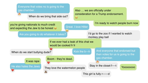 "Chiunque voti no andrà alla camera a gas", "Amo Hitler", "Andrei allo zoo se volessi vedere una scimmia giocare a palla". Le 2.900 pagine di conversazioni ottenute da Politico che rivelano la retorica razzista, antisemita e violenta tra i seguaci di Trump e le dimissioni che ne sono seguite