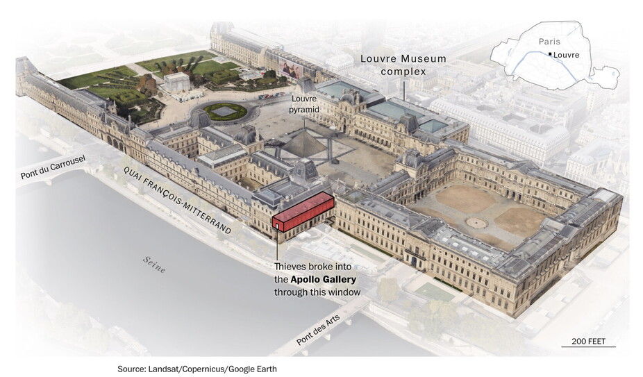Cosa è successo nei sette minuti di furto al Louvre. Le infografiche
