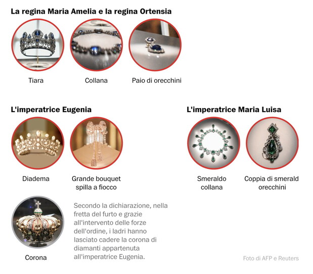 Quattro ladri scalano il museo, sfondano una finestra e portano via i gioielli della monarchia francese sotto gli occhi dei turisti. La smerigliatrice, la scala elettrica, gli scooter: tutti i dettagli del furto da film nel cuore di Parigi. La ricostruzione del colpo, per immagini