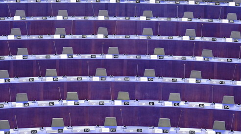 I seggi dei deputati del Parlamento europeo vuoti tra una sessione di lavoro e l'altra (Foto di Thierry Monasse/Getty Images)