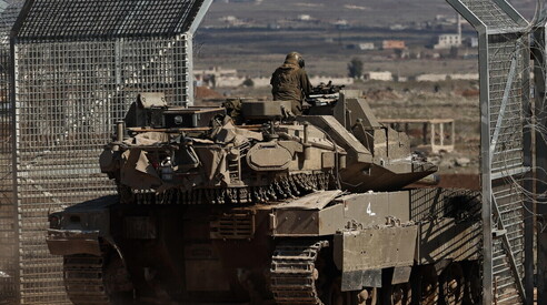 Un carroarmato israeliano entra nella buffer zone vicino a Quneitra, in Siria (foto Ansa)