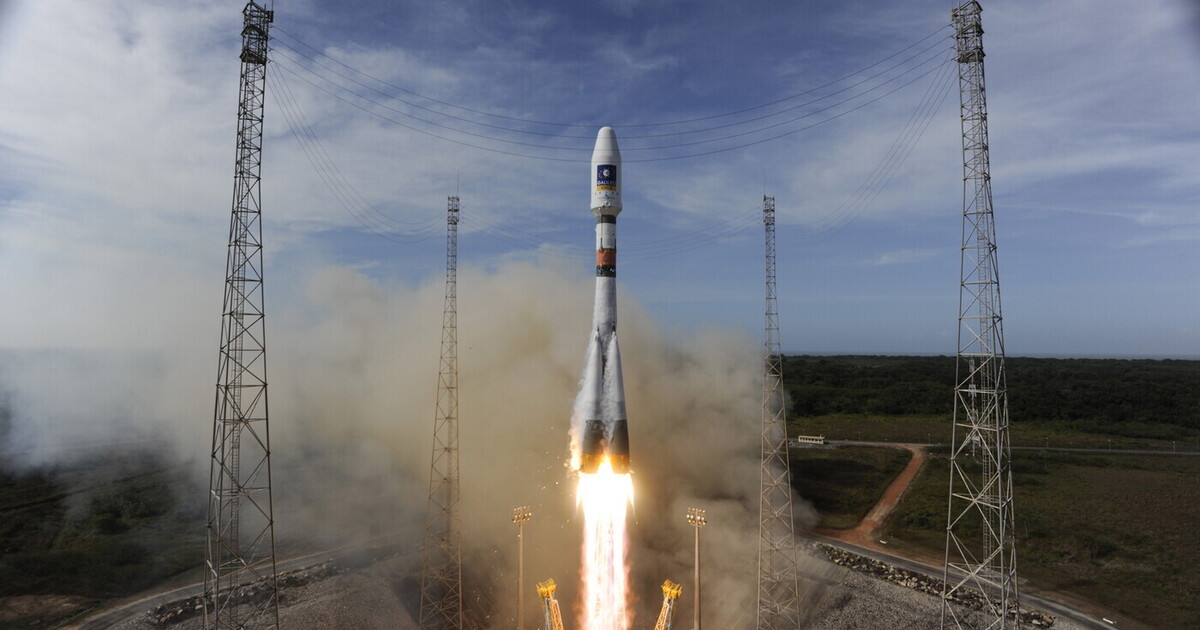 Un razzo Soyuz decolla dallo spazioporto europeo nella Guyana francese per la messa in orbita di satelliti Galileo (S. Corvaja / ESA via Getty Images)