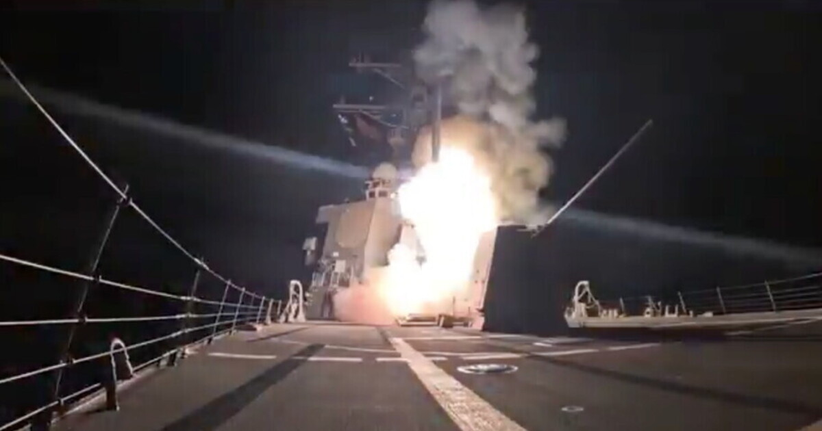 Un momento dell'attacco americano in Nigeria con il lancio di un missile Tomahawk