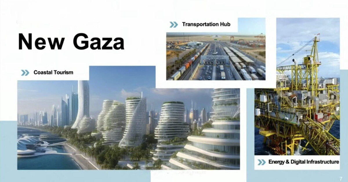 Sembra l’incipit di una puntata di Dream Home Makeover, ma il contesto è il ben più serio e blasonato World Economic Forum di Davos. Sul palco non c’è una coppia in cerca della casa perfetta, bensì Jared Kushner, genero e consigliere chiave di Donald Trump, che presenta il “masterplan” per il futuro della Striscia di Gaza. Sullo schermo scorrono immagini generate dall’intelligenza artificiale: grattacieli scintillanti, condomini disposti in anelli concentrici, hub tecnologici, data center, parchi e una lunga spiaggia turistica. Tutto pronto, assicurano, in due o tre anni. Così dalle 90.000 tonnellate di macerie prodotte dalla guerra dovrebbe nascere una “nuova Gaza”.