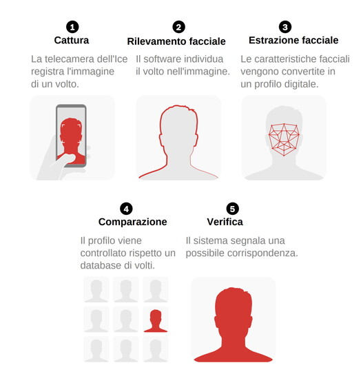 L'Ice ha iniziato a utilizzare la tecnologia di riconoscimento facciale nelle strade nel corso dell'ultimo anno. Una nuova app realizzata da Nec, Mobile Fortify, consente agli agenti dell'Ice di confrontare immediatamente le scansioni dei volti e delle impronte digitali effettuate con i telefoni sul campo con i database contenenti lo status di immigrazione delle persone e altre informazioni biografiche. In autunno, l'Ice ha acquistato un'app mobile per la scansione dell'iride che, secondo il suo produttore, BI2 Technologies, è in grado di identificare una persona in pochi secondi da una distanza di 15 pollici. Alcuni cittadini statunitensi hanno riferito di aver subìto un controllo in tempo reale dei loro volti da parte dell'Ice o della Customs and Border Protection. “Ha utilizzato il riconoscimento facciale con un altro sistema e questo ha confermato che ero un cittadino. A quel punto mi hanno lasciato andare”, ha dichiarato Julio Garcia, residente a Bloomington, Minnesota, in una dichiarazione in tribunale, descrivendo come gli agenti dell'immigrazione lo hanno arrestato il 9 gennaio. L'Ice, la Cbp, la Nec e la BI2 Technologies non hanno risposto alle richieste di commento.